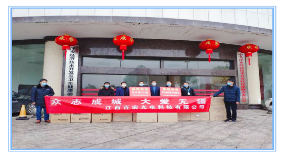 2020年百宏光電科技有限公司、中共江西百宏光電黨支部向經開區衛健委捐贈價值三十余萬元人民幣的防疫物資