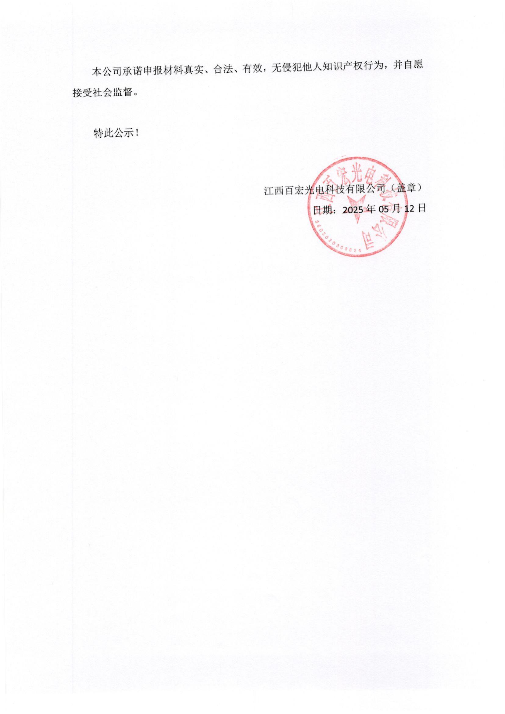 關于江西百宏光電科技有限公司參加江西省專利獎的公示